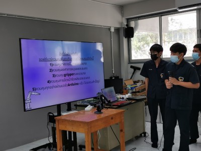 นักเรียนผู้เข้ารับการอบรมนำเสนอผลงานกลุ่ม การโปรแกรมหุ่นยนต์ที่กลุ่มของตนเองคิดค้น